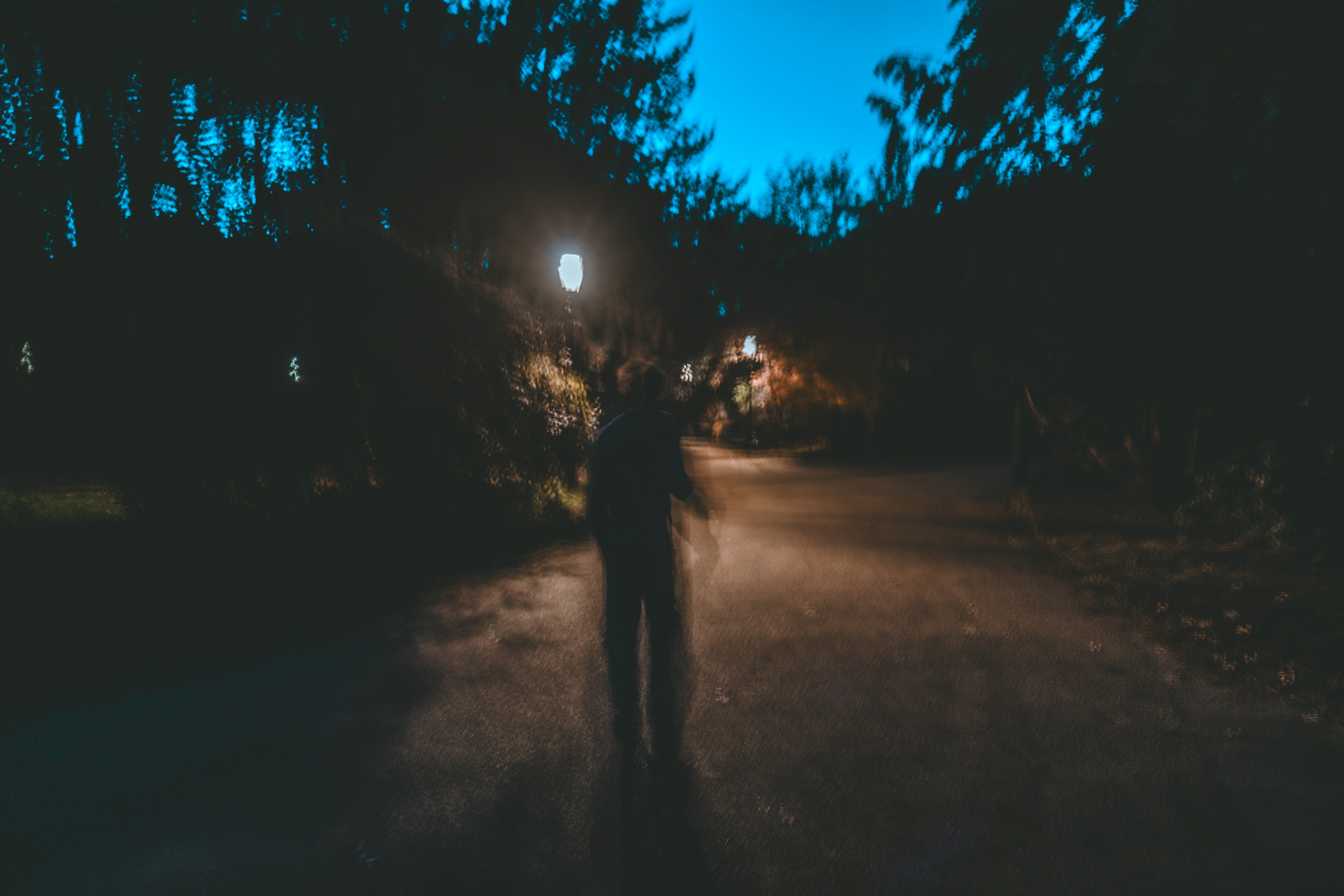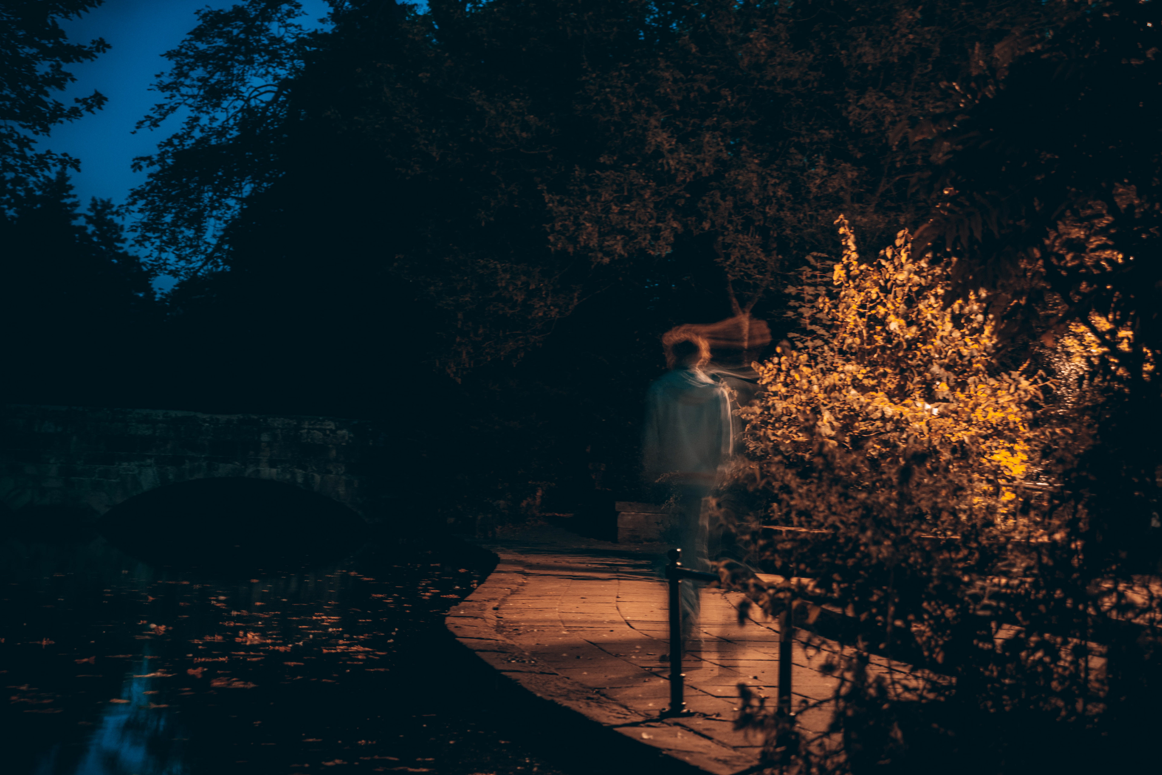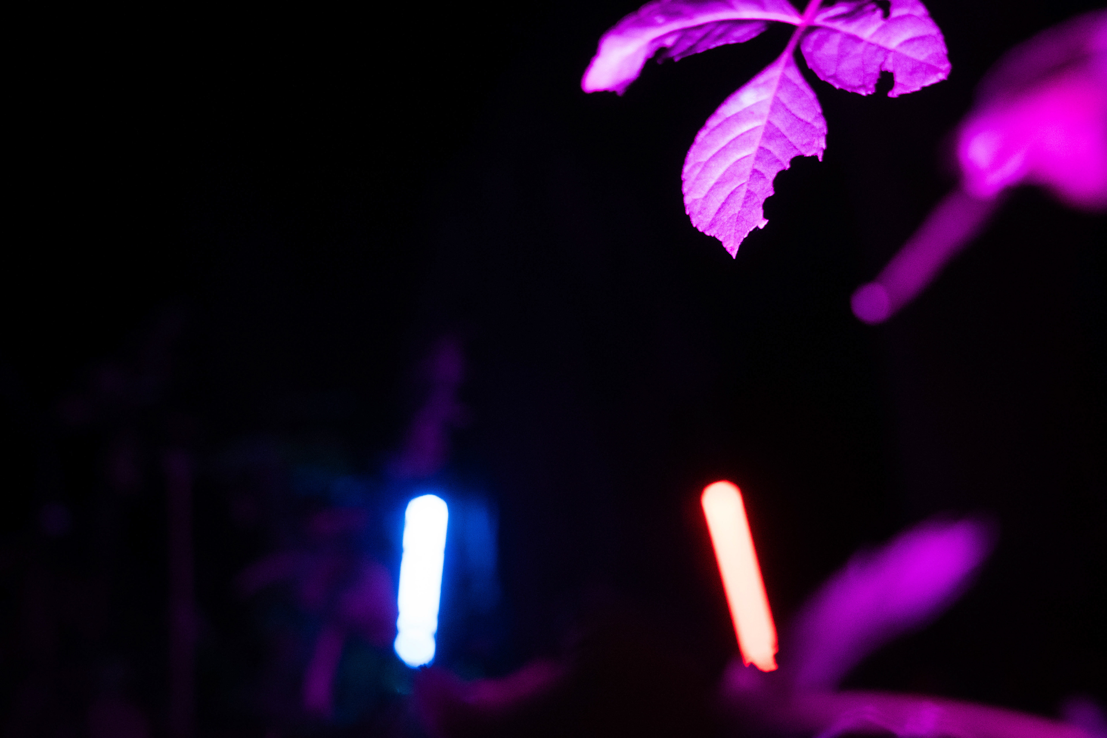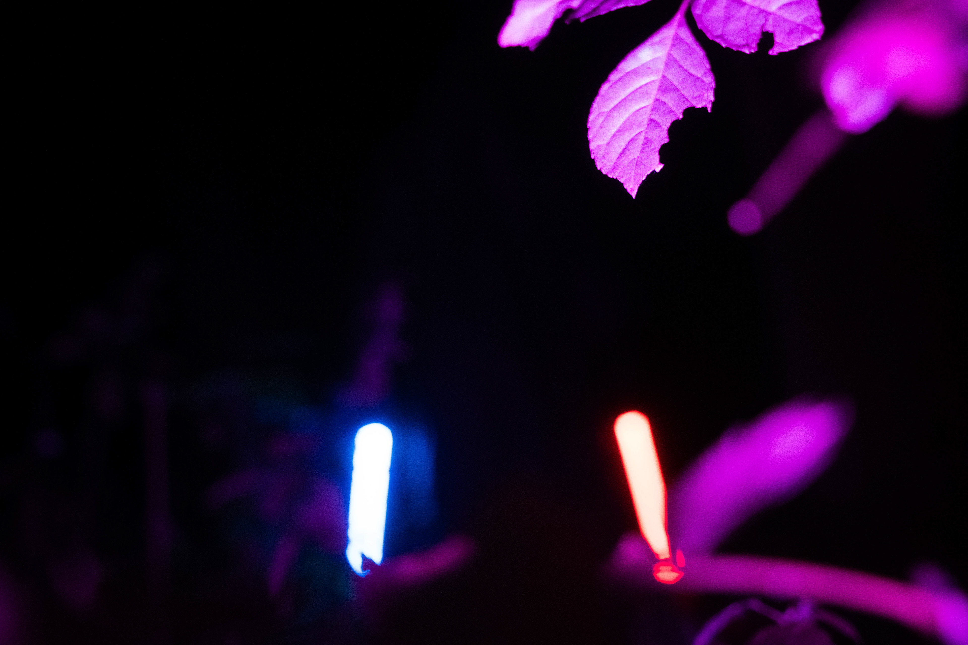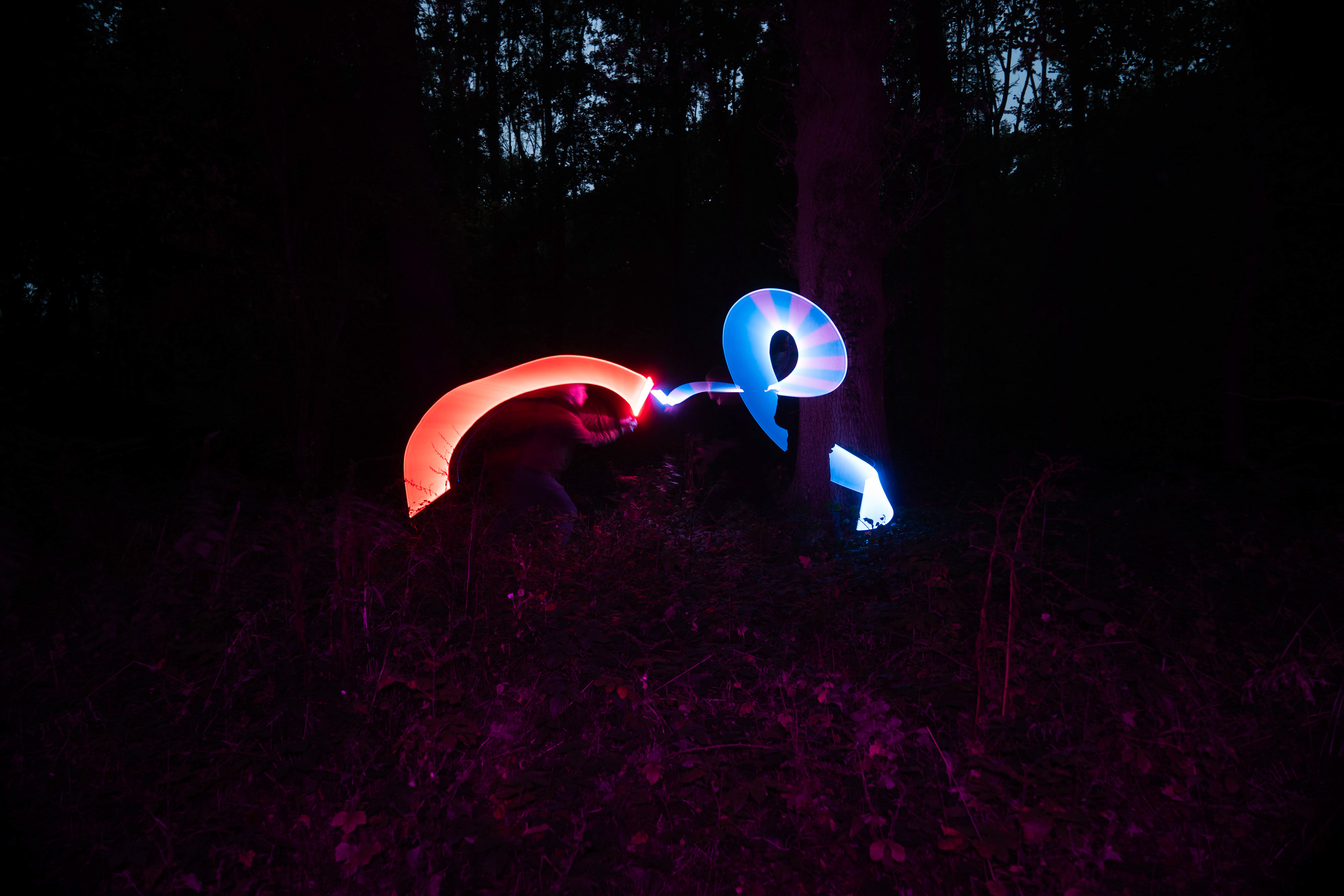 For this sequence of photos I took a similar idea but took it out to a forest location to give the look of a star wars planet. for these photos I added a black mist diffusion filter to the camera to create the look i attempted on the first image from the previous set. this means that the light sabers get more of a glowing effect around the direct light source, this adds a more "cinematic" feel to the lighting. all these photos were lit with a rectangular "aperture mc" light on a pink setting, this allowed for the foreground and some of the background to be more visible in the dark location. in post I created a desaturated look but I feel the use of the pink still helps lighting and can be seen slightly in some of the foreground leaves- i chose pink as I thought it would create a more "sci-fi" look but later felt it was too much and a more cinematic look worked better for this set.