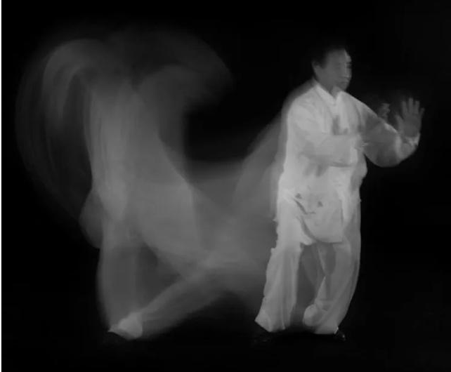 this is the black sabbath paranoid album cover which uses long exposure to make it appear as though the man with the sword is running towards the camera.